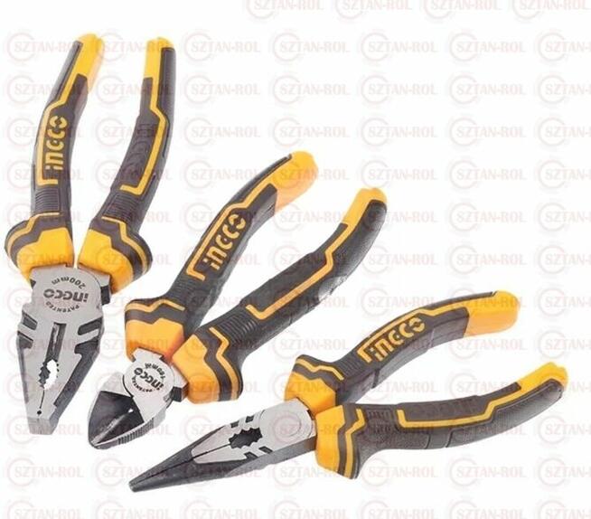 Zestaw zawiera: • Kombinerki uniwersalne 200mm, 8" • Szczypce 160mm, 6" • Obcinak boczny 160mm, 6" Polerowane w ...